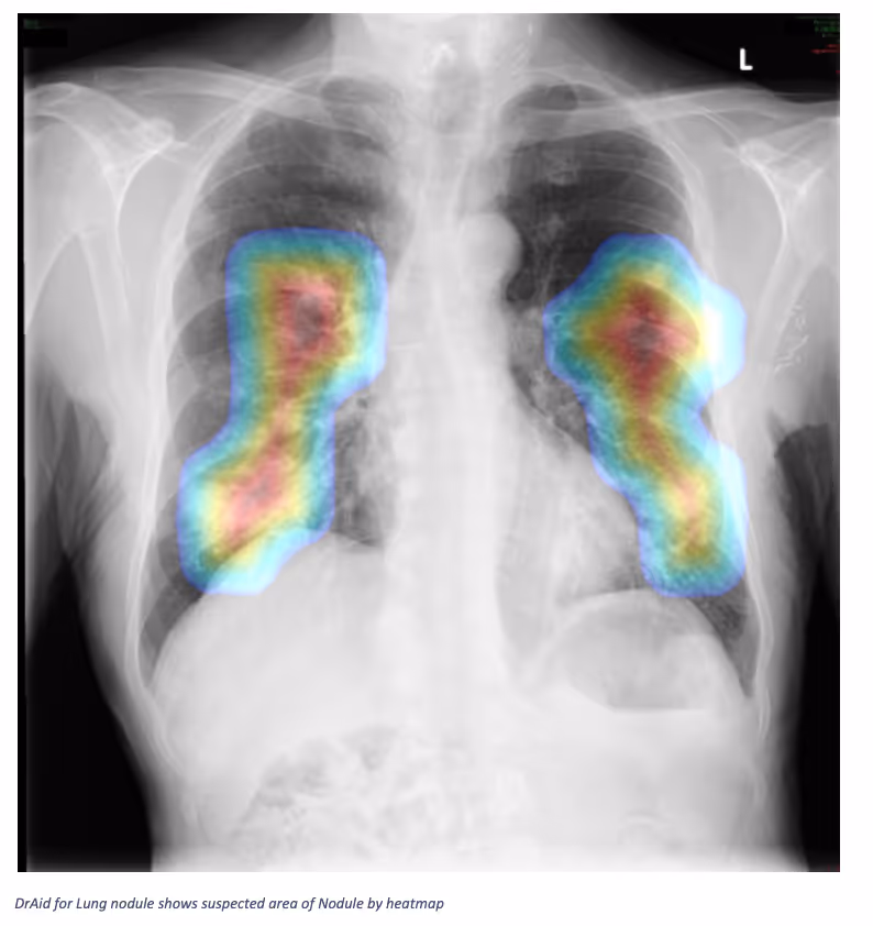 ConclusionDrAid not only detected a nodule area but also highlighted more than 1 nodule area in both lungs.Interested in deploying DrAid at your health facility?Contact the Ferrum Health team to learn more.
