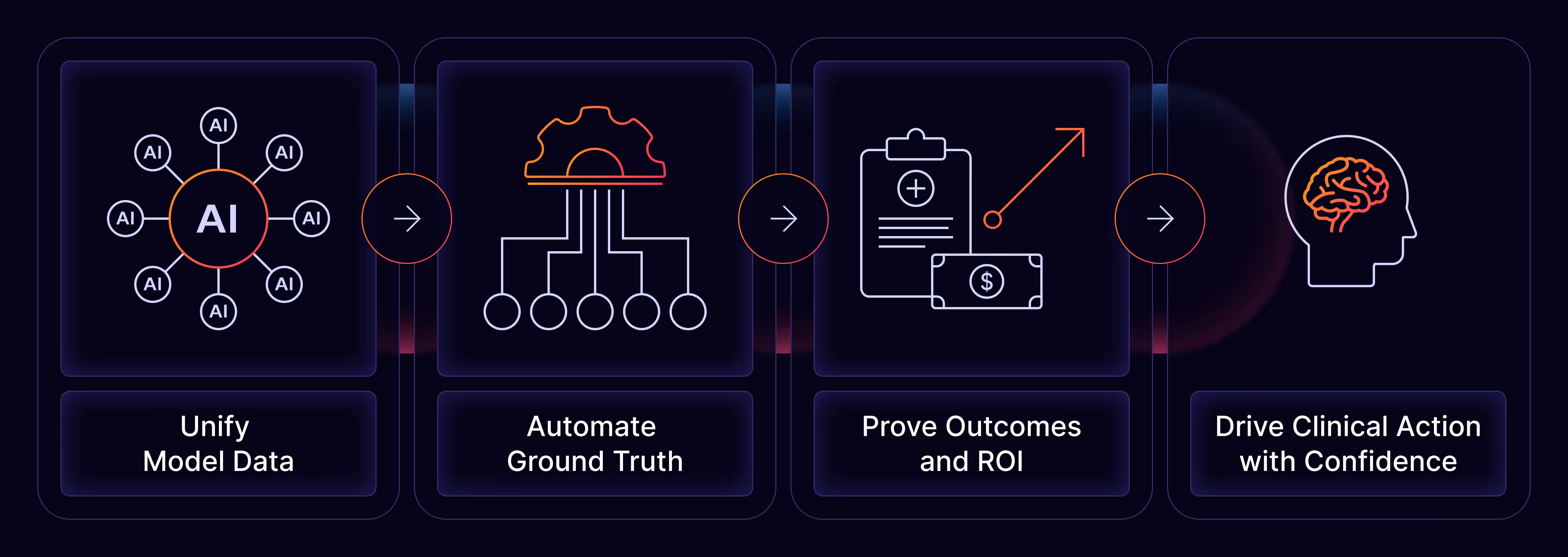 Run clinical AI as one unified suite. Integrate once across systems, choose the models you want, and measure results with vendor-neutral, automated ground truth.